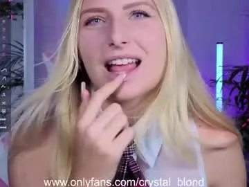 Checkout the world of glamour and temptation, where the slutty broadcaster - crystal_blond will take you on a journey of pleasure and craziness. Her randy physique, curvaceous derriere, and fresh sex toy vibrators will leave you enchanted during her cam show,